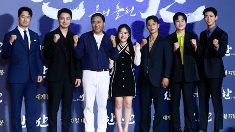 28일 영화 '한산:용의 출현' 제작보고회가 진행됐다. 이 날 행사에는 배우 박해일, 변요한, 김성규, 김성균, 김향기, 옥택연이 참석했다.