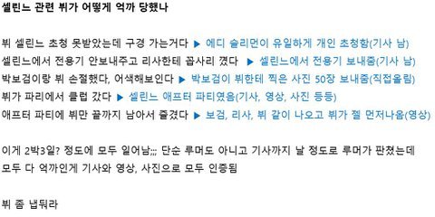 4) 파리에서 인기 많았다고 기사 날 때 : 그게 뷔 인기냐? 뷔 팬들 주입식 인기 지겨워 팬톡으로 꺼져