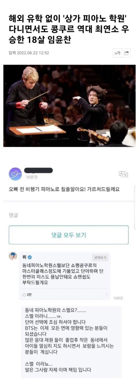 동네피아노학원스멜 풍기지말라고 비하한 방탄 뷔