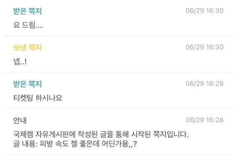 에타에 인터넷 속도 좋은 피방 물어봐서 쪽지왔길래 알려주려나 했는데ㅠ