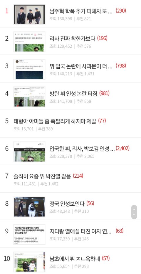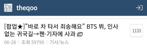 뷔가 귀국했는데 인사 안하고 3초만에 차 탔다고 톡선 100개 글 중에서 60개를 뷔 까글로 도배함
