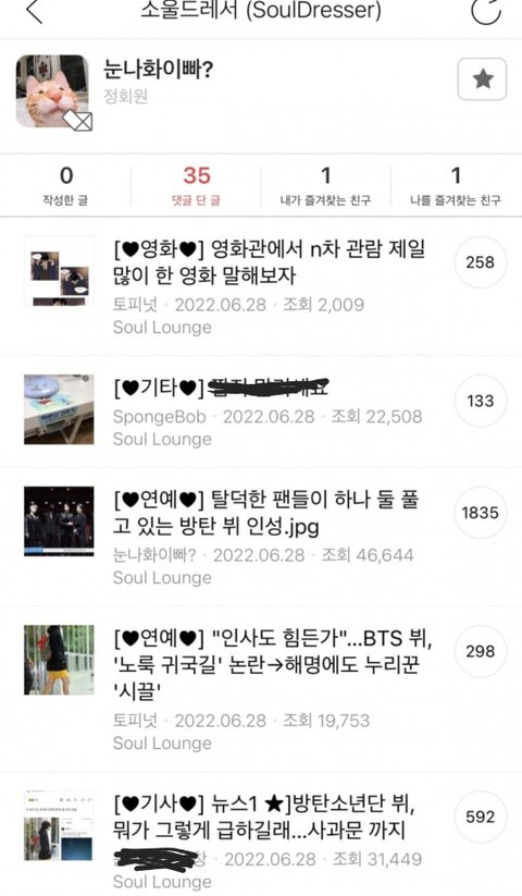 정작 팬들은 뷔가 어떤 앤지 다 아는데 팬코 하면서 뷔 까는거 그놈이 그놈인거 다 티남 진짜 쪽팔린줄을 모름
