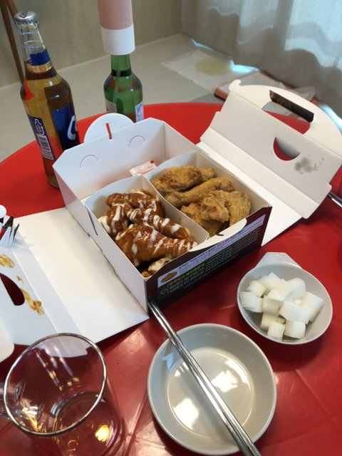 저 멀리 다른 동네에 가서 포장해왔습니다. 역시 양념치킨은 처갓집인거 같아요.