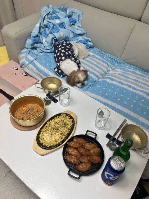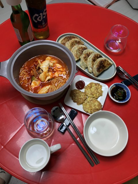순두부 추가하니까 또 색다른 맛이더라구요. 비비고만두 굽고 버섯전 남은 것도 다 같이 해치워버렸습니다. 오늘도 쏘맥과 함께 ㅎㅎ^^