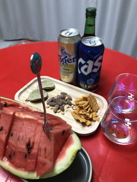 과자랑 맥주 안주로 짱인 군옥수수아몬드랑 해서 가볍게 한잔했습니다 ㅎㅎ