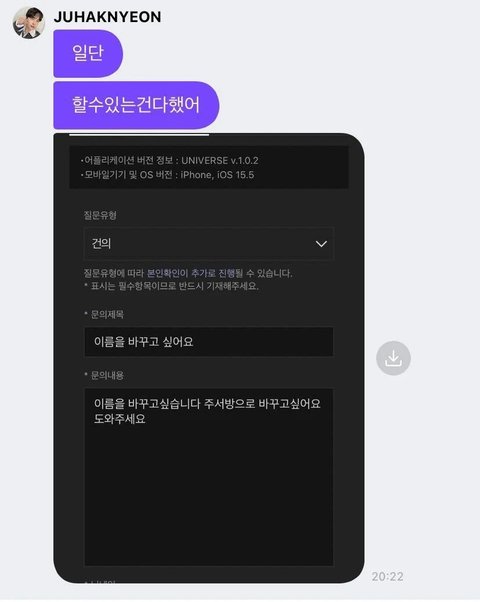 팬들이랑 유료소통(유니버스 프메)로 소통중에 이름 추천받음