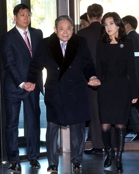 (사진 설명) 이건희 삼성전자 회장이 이부진 호텔신라 사장의 손을 잡은 채 2일 오전 서울 장충동 신라호텔에서 열린 2014년 삼성 신년하례식에 참석하고 있다. <사진=뉴스핌DB>