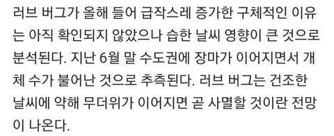 덥고 습한곳 좋아하고 장마때문에 급격하게 늘어난거래