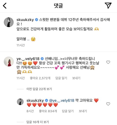 이번에 수지 12주년 게시물에 댓글 단 아린