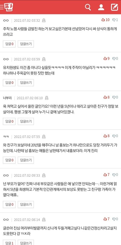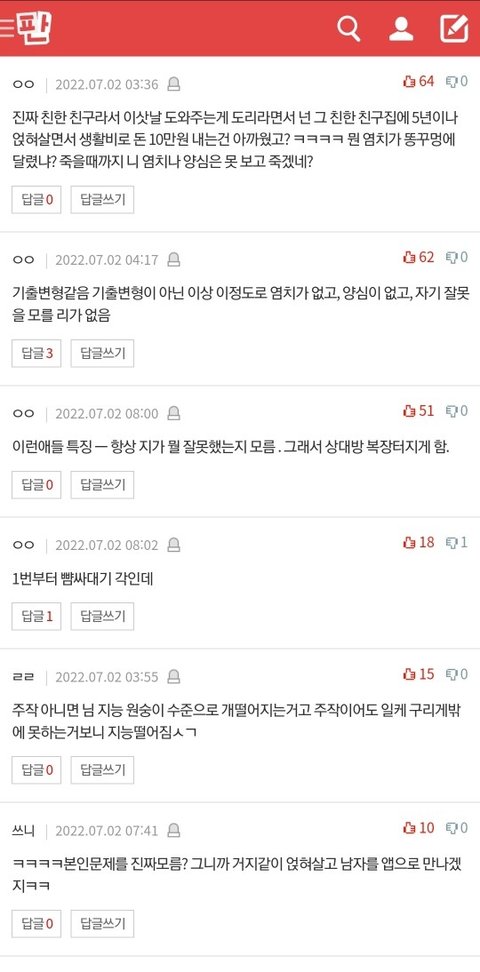 댓글 많은 톡
