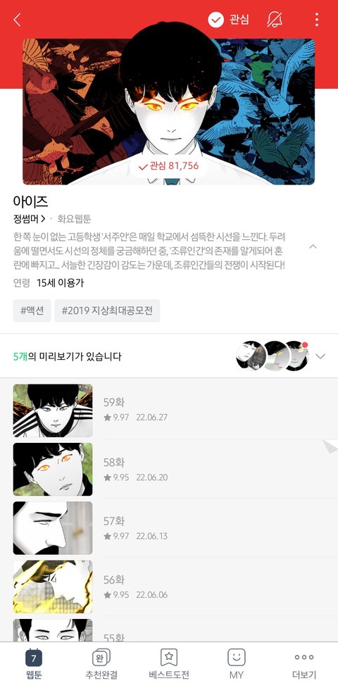웹툰 덕후로서 이 작품은 더 떠야 하는대!! ㅠㅠ 하는것들만