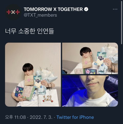 선물받은거 올림ㅜ..ㄹㅇ 이렇게 잘 챙겨주시는거 보면 그만큼 수빈이도 잘했다는거같아서 듬직해 이제 뮤뱅담당 아니시면서 지비지비때도 얼굴보러 와주시더니 최수빈 기특해