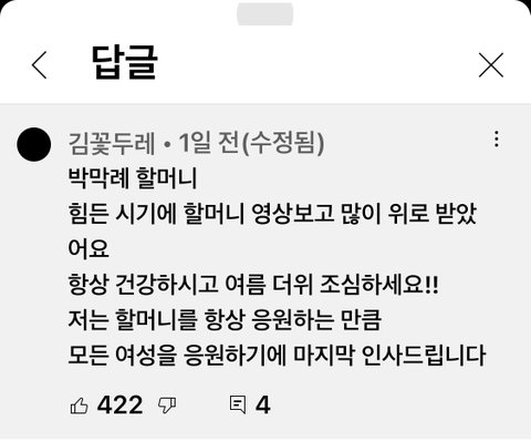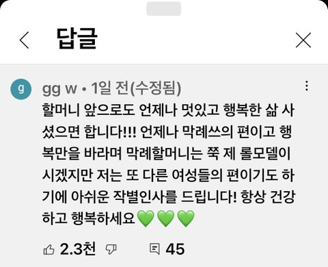 그래도 할머니라고 예의 차려서 저렇게 댓글 쓰는 것 같은데