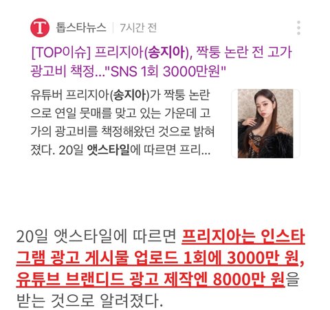 노제보다 방송 대중인지도 급이 낮은 짭지아도 짝퉁으로 나락가기 전 나는솔로로 반짝 떡상했을 때 단발성 광고료로 인스타 3000 유튜브 8000 부르는 거품시장인데 뭘...