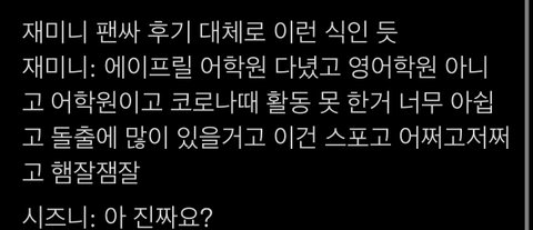런쥔이가 시즈니 밥 안 먹엇단 소리에 재민아 출동을 외치면 재미니가 2분동안 잔소리를 해줍니다 인주니가 재민아 출동. 외치니까 자 , 여러분들 ~ ? 이러면서 잔소리 빌드업 야무지게 하고 2분 동안 잔소리 함 ㅋㅋㅋㅋㅋㅋㅋㅋㅋㅋㅋㅋㅋㅋㅋㅋㅋㅋㅋㅋㅋㅋㅋㅋㅋㅋㅋㅋ 개웃겨