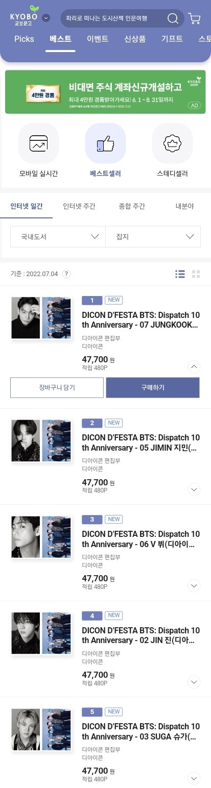 근데 베스트셀러순은 지민 1위인걸로 봐서 정국뷔는 1인 대량구매가 많은가봐