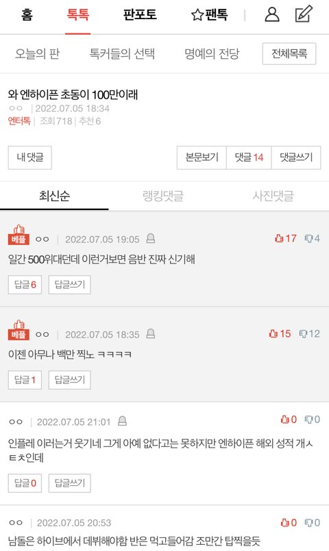 신인남돌 까글이 연예톡1위ㅋㅋㅋㅋㅋ얘네 조카 반응오나보네 견제오짐...
