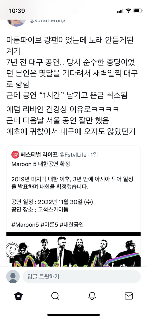 추가로 대구 오기싫어서 안온 마룬파이브 클라스