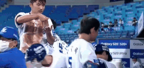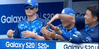 갑자기 플립 세레머니를 하는 삼성 라이온즈 선수들