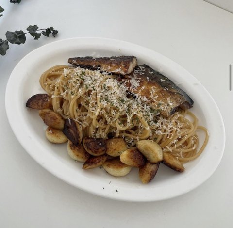 등푸른 생선을 즐겨먹지않는데 바싹 튀겨낸 고등어에 레몬즙 살짝 뿌리고 마늘쯔유파스타에 곁들여 냈더니 비린 맛이 크게 느껴지지않아 좋았어요..! 엄마께서 화이트와인이랑 엄청 잘 어울렸다고 좋아하셨어요