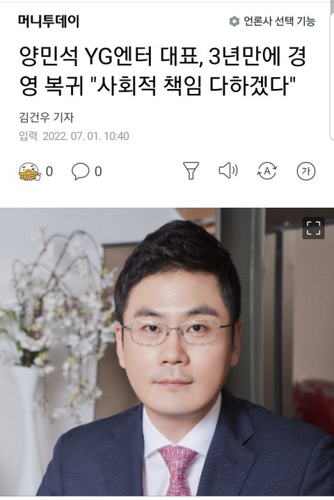 양민석 YG 대표이사 복귀래