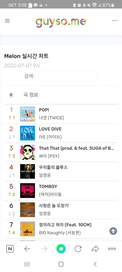 조금씩 올라가다가 대중타서 처음으로 실차1위까지 옴 ㅠㅠ 10시 1위 올라갈 수도 ㅠㅠ 천천히 올라가는 모습 진짜 좋다 참고로 전 사이언티스트 멜론 최고 일간순위가 51윈가 그럼