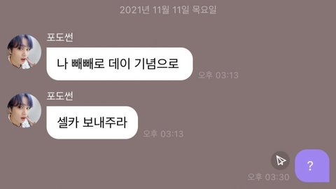 버블에 팬들이 사진보내는 기능없는데 갑자기 이해찬 셀카보내달라고 버블보냄 그리고 ㄹㅈ이 셀카보내줌 빼빼로데이라 유난히 티내고 싶었나?
