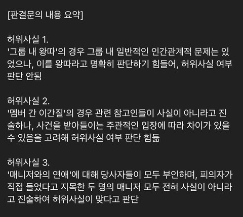 그리고 김채원이 데뷔초에 매니저랑 연애했다고 이현주가 지인들한테 말했던거 실제로는 허위사실이라고 판단됐대;;;