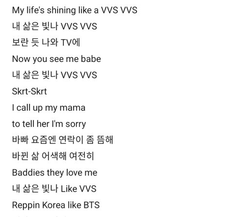 정작 vvs 리믹스 가사에 방탄 언급하는 가사있는데...
