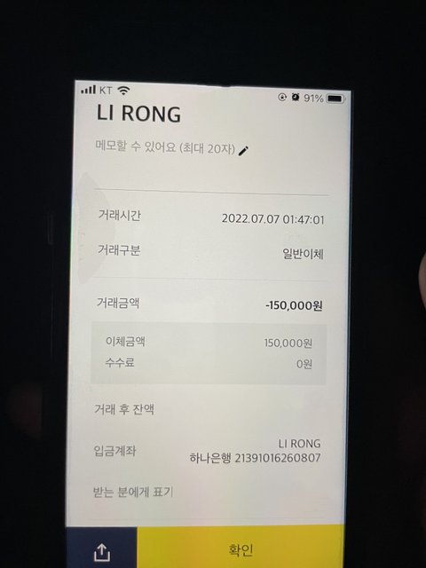 근데 그 날 새벽에 이쪽으로 15만원 입금하고 저한테 십분 후 숙소도착해서 잔다는 톡을 보냈습니다.