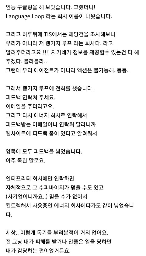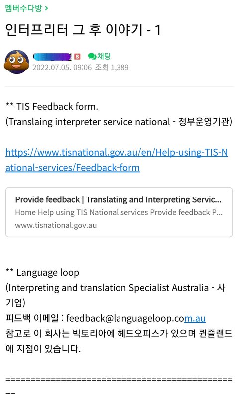 요약 : "네이롱 재외국민 카페" 스텝 중의 한명이 외국에서 한인 통역 서비스를 이용하였다가 불쾌한 서비스를 당하고 나서 카페에다 하소연 하는 중