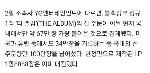 전에는 유럽이나 미국 판매량 초동에 안들어갔는데 요즘은 들어간대 그럼 블핑도 100만 넘은거 아니냐
