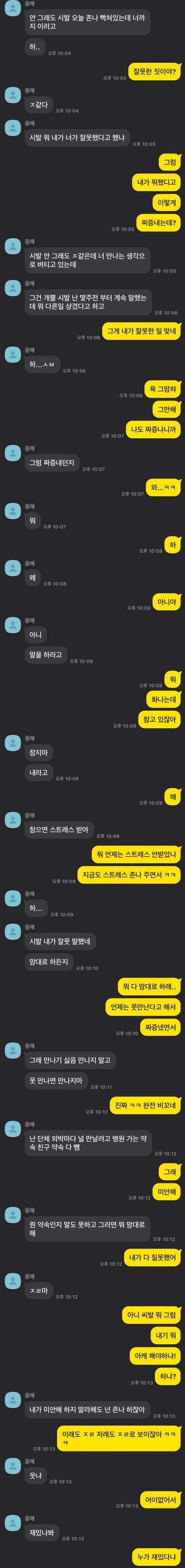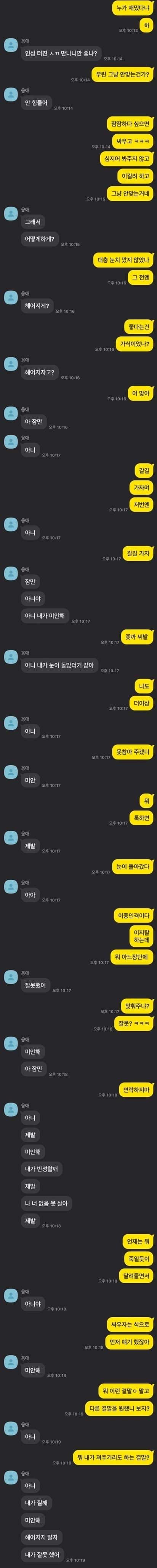 참고로 남자는 기숙사 학교 다녀서 토요일이나 공휴일밖에 못 만나고 여친 만날때엔 매번 친구 약속도 깨고 만나서 어느정돈 이해는 되긴 하는데 말이 잘못된거 같아