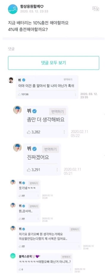 그냥 정국이처럼 댓글 하나도 안 달아주는게 더 나은거야? 정국팬들은 뷔 싫어해서 맨날 정국은 망신살 없고 인성좋고 뷔는 인성 더럽다 이러잖아...