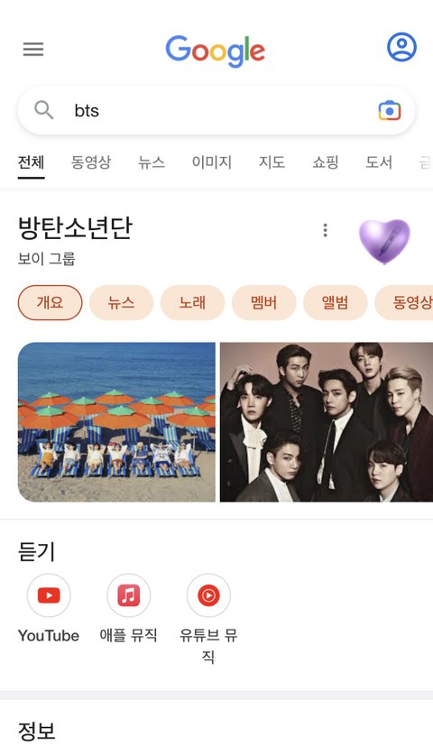 구글에 bts 검색해보라고해서 했더니