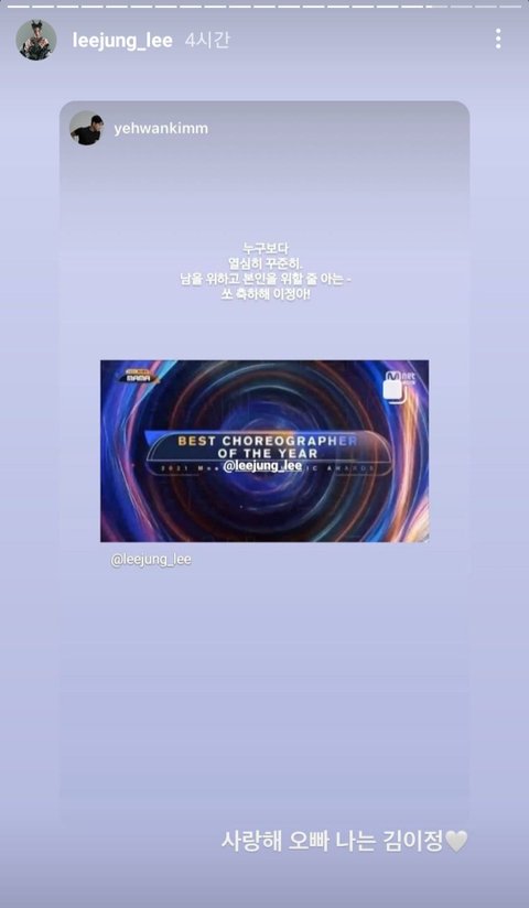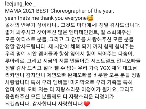 ++ 그리고 마마 안무가상 수상소감에 리정이가 지금의 저를 만들어준 저스트절크 감사하다고도 써놨어!