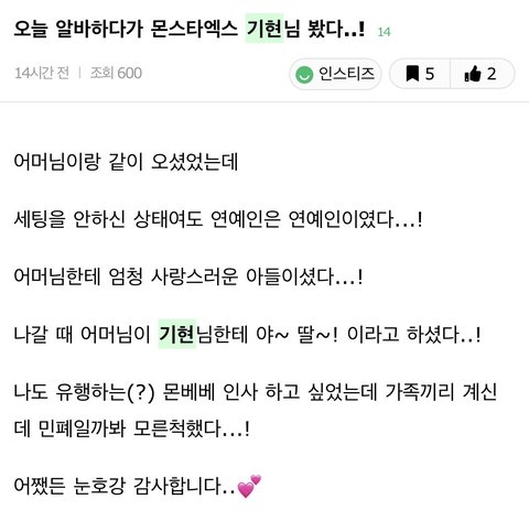 오늘 유기현이 목격담