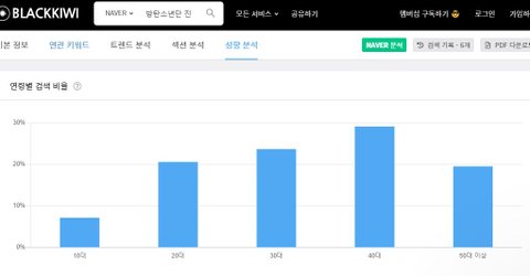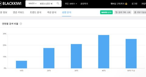 방탄은 대중성 높고 여러 정치경제적 이슈도 많아서 전연령 고르게 나오는 편