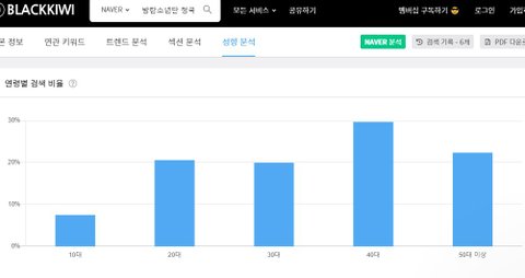 지민은 40대 50대가 압도적으로 높고 각각 30%가 넘어서 신기함