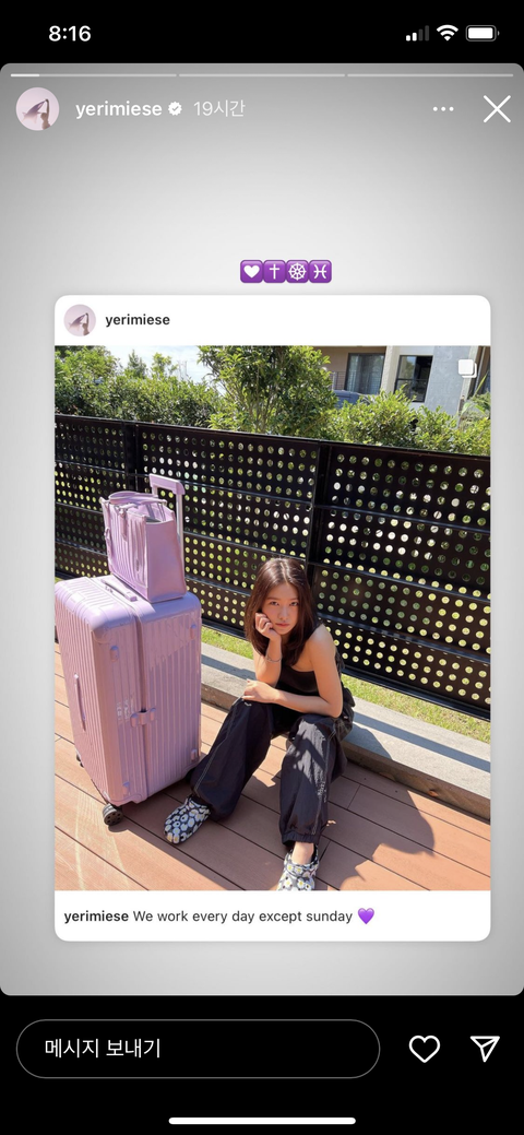하지만 태그된 계정을 들어가도 예리의 스토리나 게시물이 리그램되어있지 않고, 브랜드의 모델이 된것도 아님