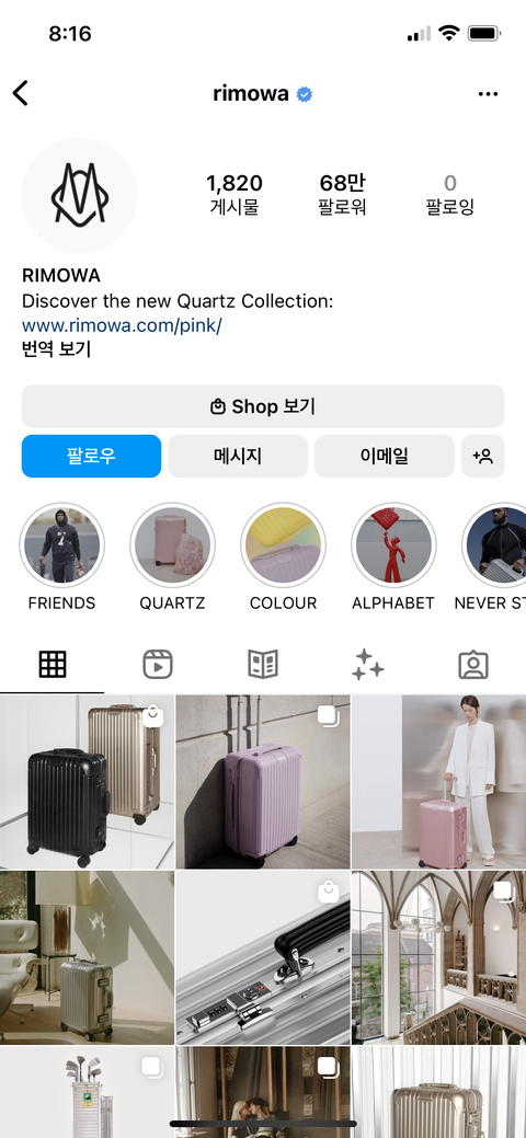갑자기 캐리브랜드를 태그해서 게시물을 올림