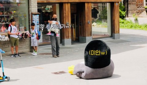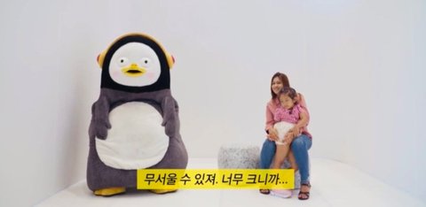 가방 잃어버리고 돈 마련하려고 장사하는 펭수를 쳐다보던 아이