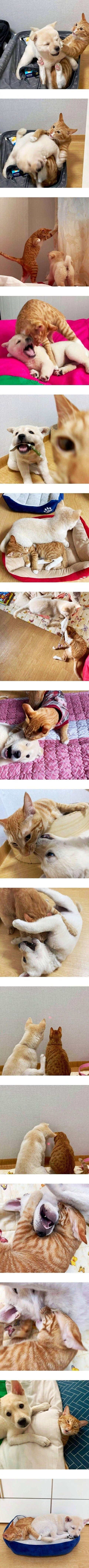 이 사진 너무 귀엽다ㅠㅠㅠ 멍냥이들 오래오래 행복하렴