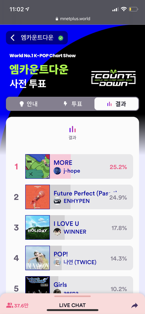 0.1프로 차이야ㅠ 엠카 투표해죵!