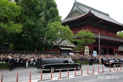 아베 전 총리에 대한 장례식은 이날 오후 1시 도쿄 미나토구의 한 사찰인 조죠지(増上寺)에서 열렸다. 아베 전 총리의 부인 아베 아키에 여사가 상주 역할을 했다.