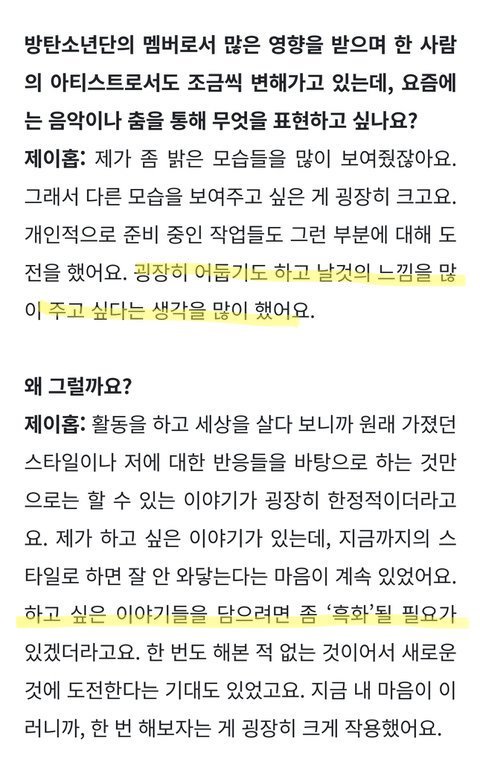 근데 왜 흑화한다는 걸까? 제이홉의 인터뷰 내용을 보면 알 수 있어!