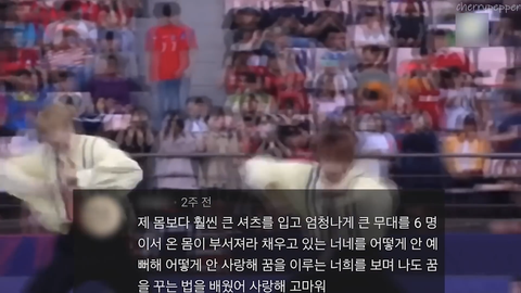 진짜 이 댓글은 볼 때마다 눈물나옴 팬이 이런 생각을 가지게 만들어주는 아이돌이 몇이나 있을까... 난 진짜 나를 좋아해주는 팬이 나를 보고 꿈을 꾸는 법을 배웠다고 하면 너무 고맙고 행복할 것 같음