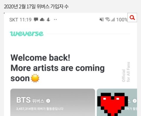 방탄 위버스 유저수 변화 봐 ㅋㅋ