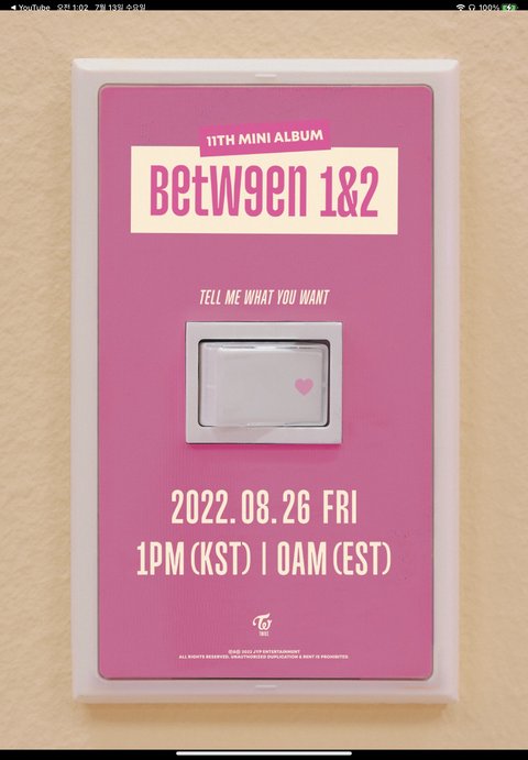 비트윈1&2가 재계약전의 트와이스를1로 재계약후가 제2서막이니깐 2로 표현하는듯 이번앨범이 딱 1과 2 사이잖아 너무 좋다… ㅎㅎㅎ