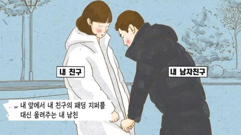 내 앞에서 내 친구의 패딩지퍼를 올려주는 남친 괜찮다 vs 안괜찮다
